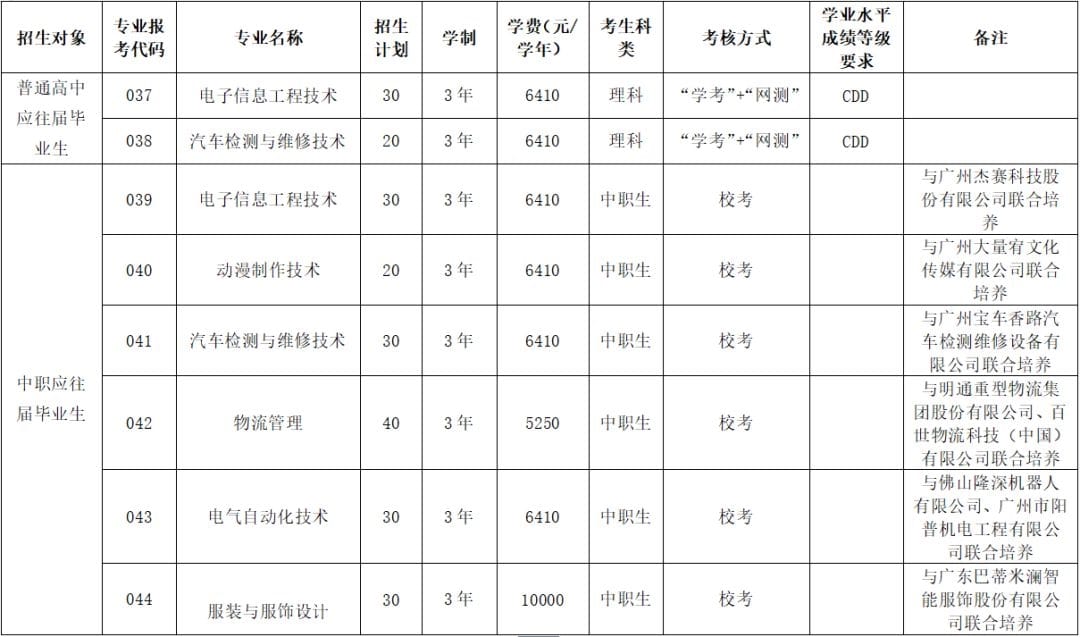 1.我院招收普通高中毕业生采用“文化素质+职业技能”的考核方式,并将综合素质评价结果作为重要的参考因素。其中,“文化素质”统一采用高中学业水平考试的语文、数学、英语三科成绩(以下简称“学考”,满分值为300分);职业技能考核主要对考生进行职业适应性测试,采用“网上职业适应性联合测试”(以下简称“网测”,满分值为100分),网测成绩不计入总分,普通高中考生入学测试总分满分值为300分。职业适应性测试采用广东省教育考试服务网统一进行试点专业的职业适应性测试成绩。