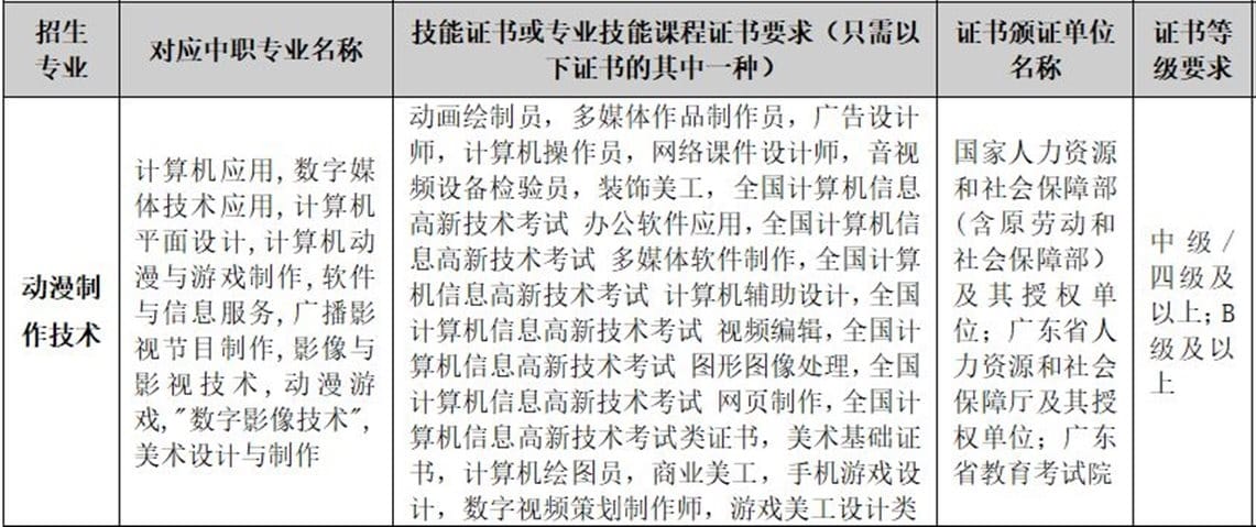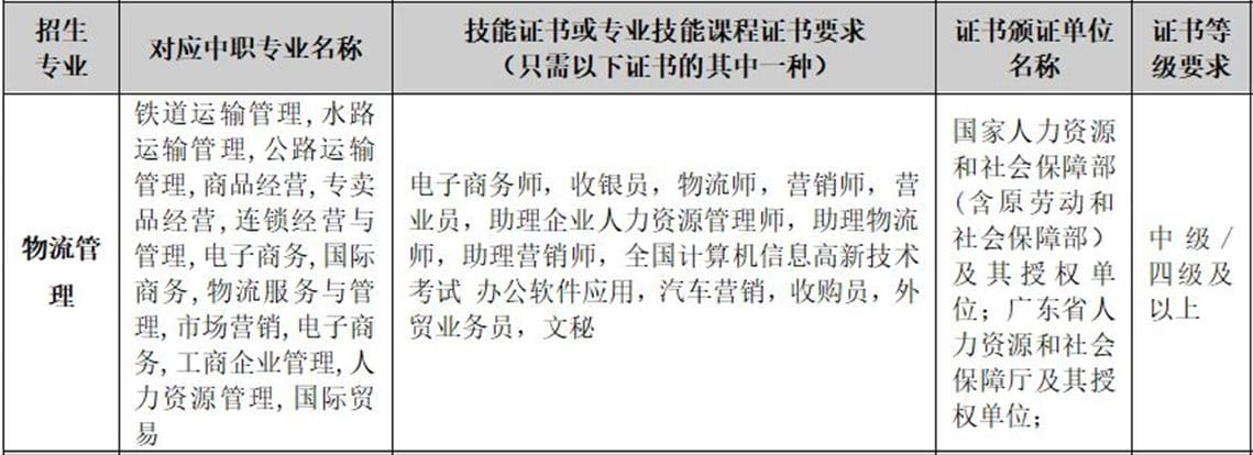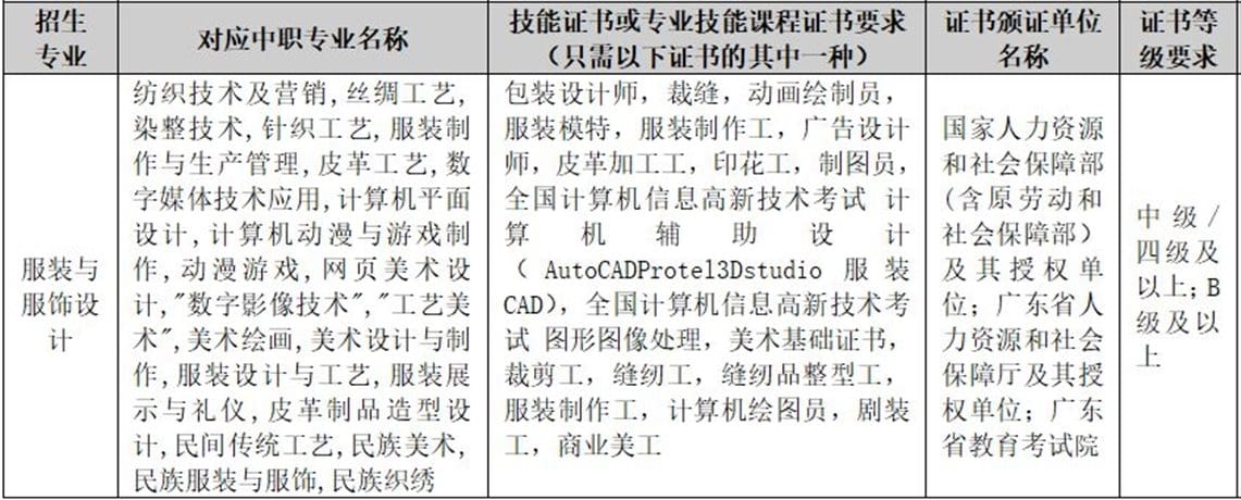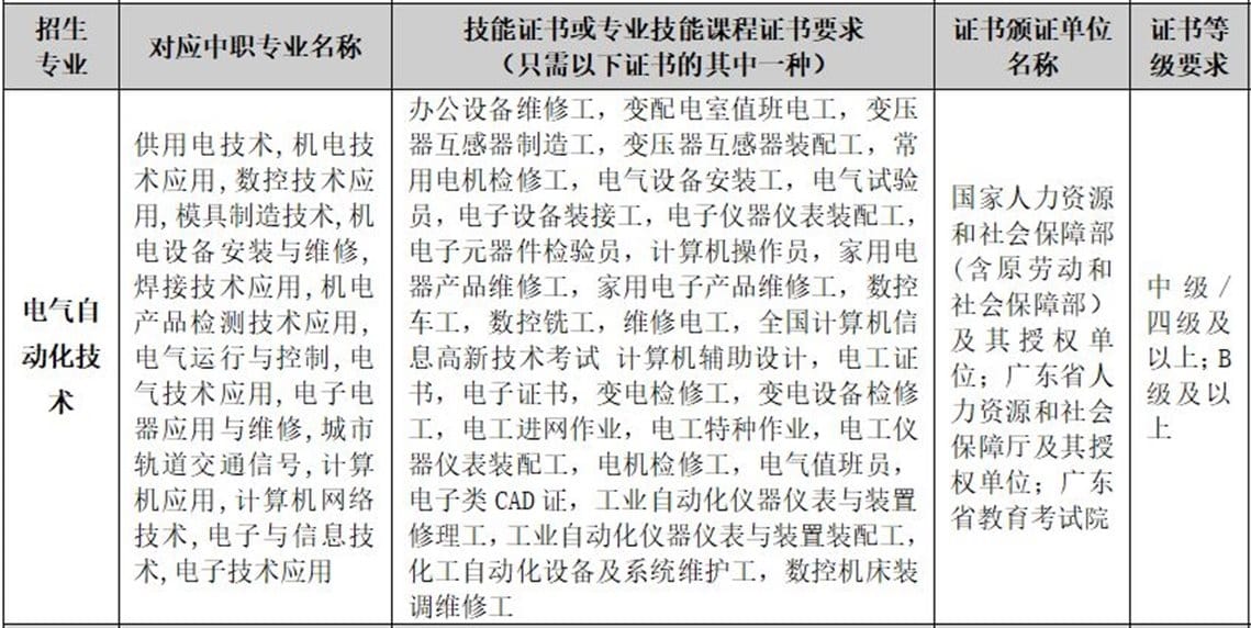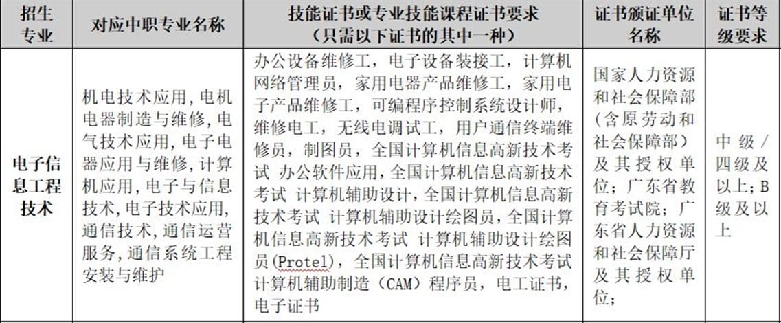 注:中职阶段所学专业与我院招生专业直接相关,并取得与招生专业相关的职业资格技能等级证书。职业资格技能等级证书原则上为国家职业资格中级及以上技能等级证书,或省教育考试院主考的专业技能课程B级及以上证书,或省级以上人力资源和社会保障部门主考(或授权)的中级及以上技能等级证书。